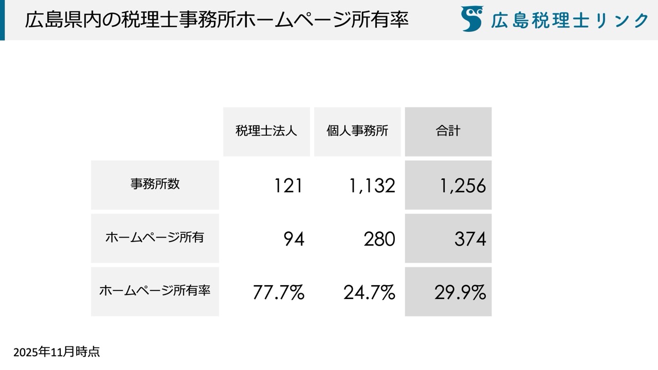 税理士法人に関しては約78%が所有している一方、個人事務所は約25%、全体としては約30%でした。